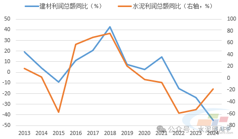 從近12年數(shù)據(jù)看,水泥行業(yè)利潤總額同比走勢與建材整體基本一致,2022-2024年,水泥行業(yè)利潤大幅下滑,是拖累建材行業(yè)連續(xù)三年持續(xù)下降的主要因素,因此水泥實(shí)現(xiàn)穩(wěn)增長對整個(gè)建材行業(yè)穩(wěn)增長至關(guān)重要。