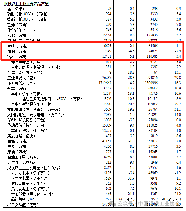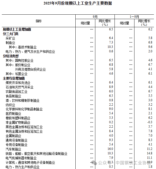 10月20日,國(guó)家統(tǒng)計(jì)局發(fā)布的數(shù)據(jù)顯示,2025年9月份,我國(guó)粗鋼產(chǎn)量7349萬(wàn)噸,同比下降4.6%;生鐵產(chǎn)量6605萬(wàn)噸,同比下降2.4%;鋼材產(chǎn)量12421萬(wàn)噸,同比增長(zhǎng)5.1%。