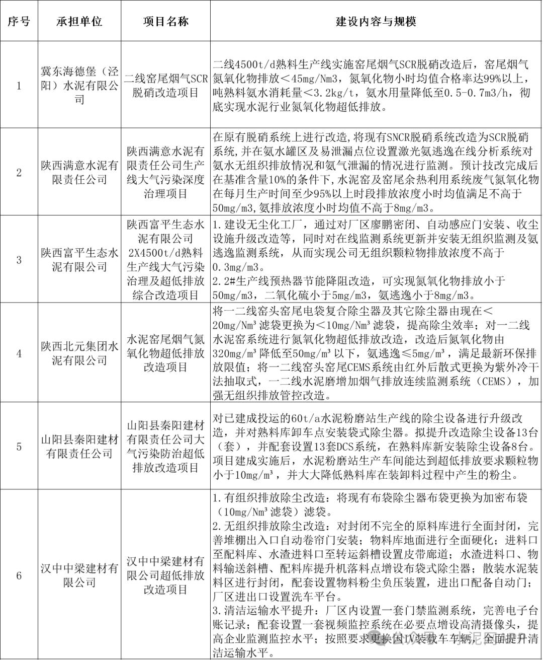 其中包含多個(gè)水泥企業(yè)項(xiàng)目: